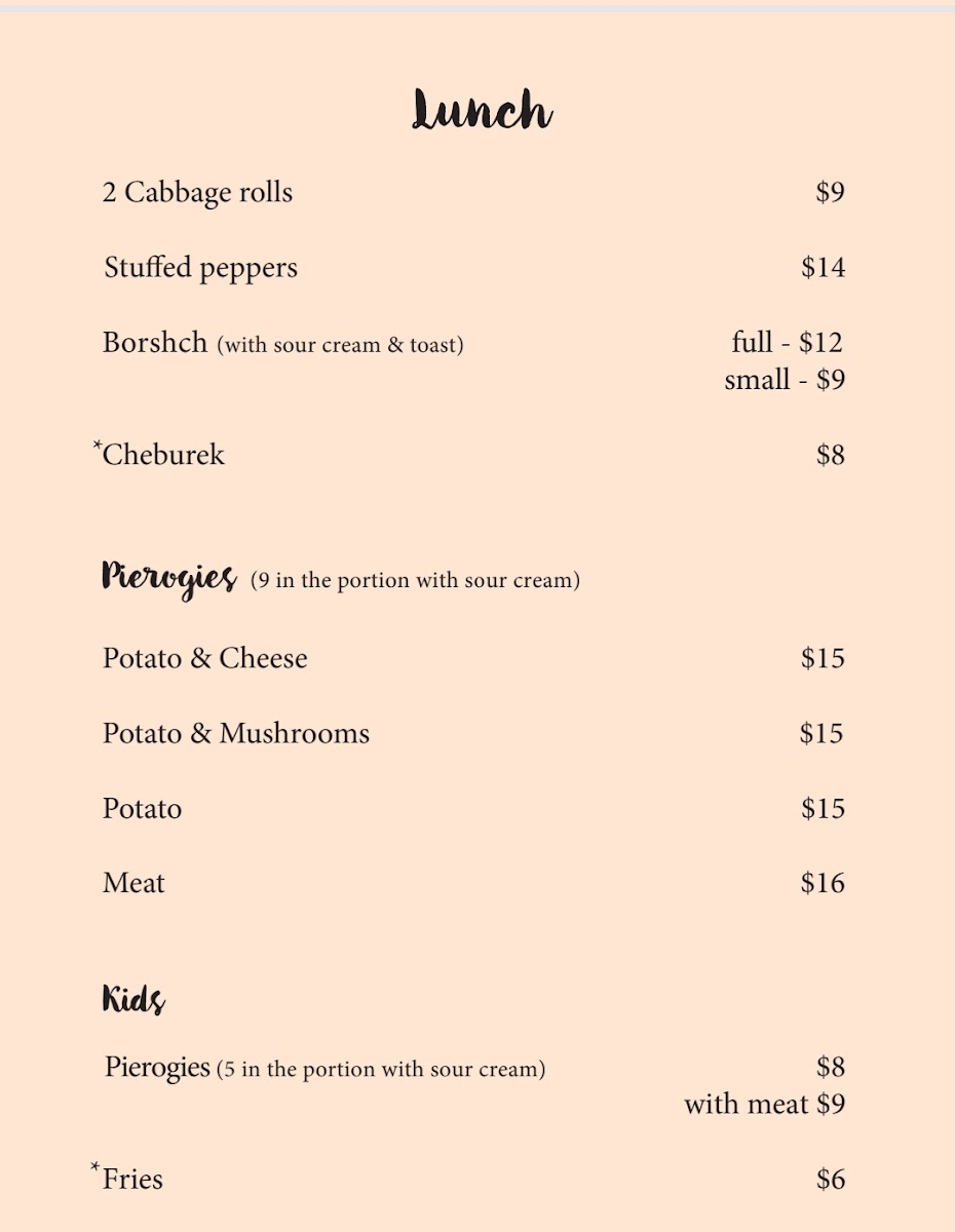 Welcome to Sunflower Ukrainian Cafe, a charming culinary oasis nestled in Summerland, BC. This cozy cafe specializes in authentic Ukrainian cuisine, with highlights that undoubtedly delight the palate. The menu offers an impressive array of handmade varenykys (pierogies), featuring flavors like potato & cheese and savory meat, each dish crafted with care. Patrons rave about the comfort of classic borsch, perfectly accompanied by refreshing side salads like the beet or seasonal vegetable salad. Don't miss the crowd-favorite honey cake and decadent profiteroles—each bite a sweet revelation.
